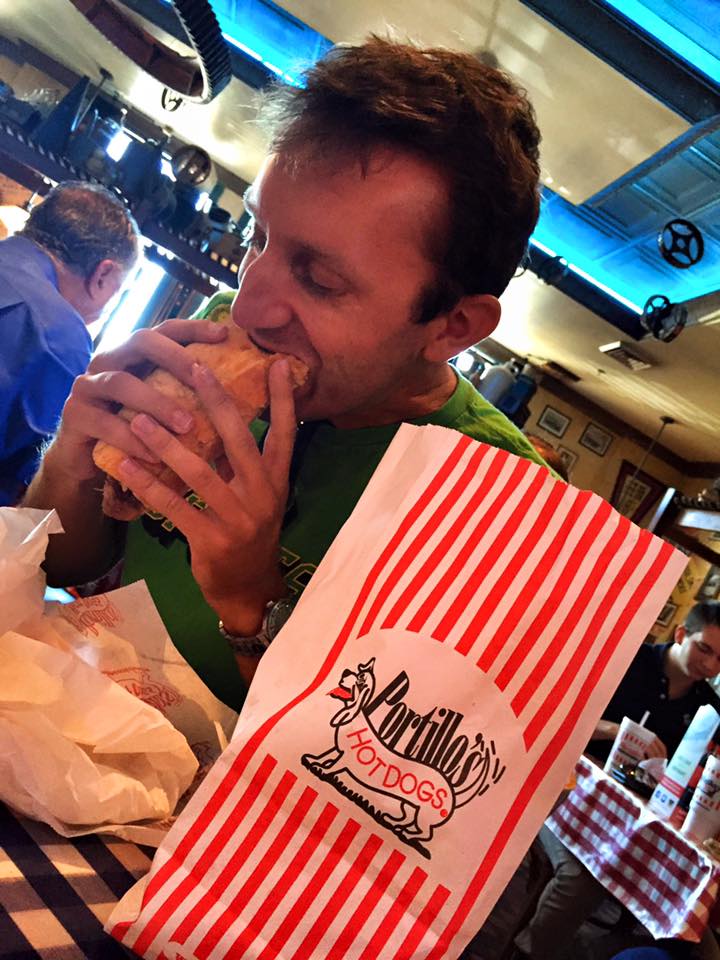 All of this walking combined with the lackluster Starbucker’s croissant from this morning gave me a great hunger. Greg kept checking in with me to see if I was becoming irritable. I apparently have a reputation for getting hangry (hungry and angry simultaneously) if I am not fed promptly. The scenery kept me calm long enough to make it to Portillo’s for an Italian beef sandwich and a hot dog.
