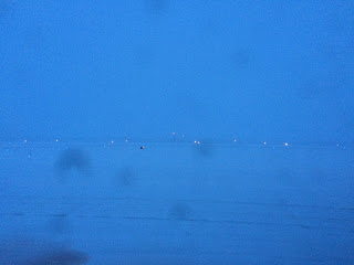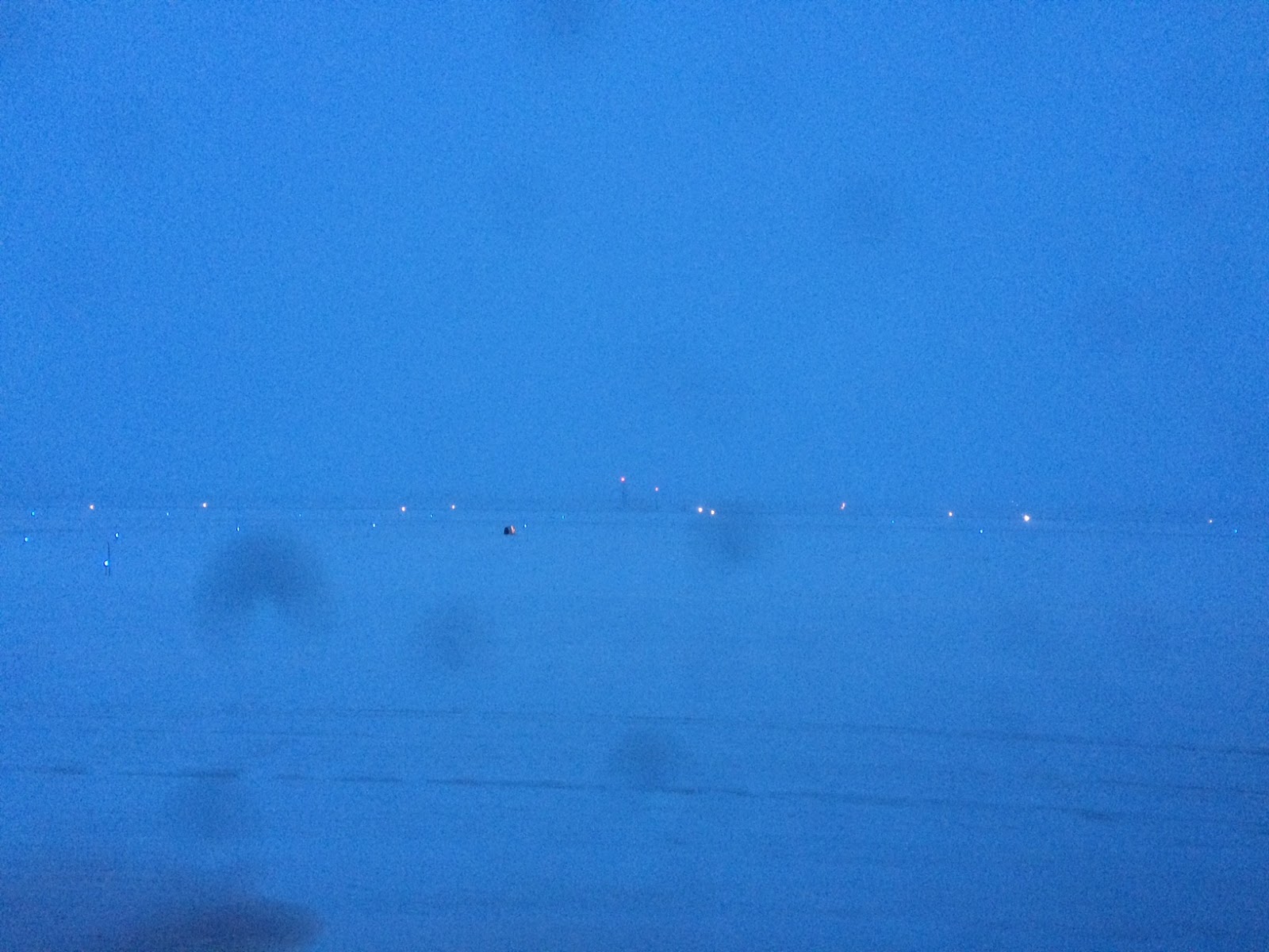 The following morning I fought off frostbite to do my walk-around which basically consisted of walking very rapidly around the plane after I quickly determined that we needed deicing based on the 8 inch icicles hanging from the nose and the snow and ice that covered our windscreen. Once the windows were cleared, we got this fine vista of . . . nothing as far as the eye could see. It’s just so . . . barren. The captain I was flying with had just been transferred to Minneapolis from Salt Lake. He was taken aback by some of the places we landed. Untowered airports, short runways, landing on snow or ice, calculating weight & balance by hand…these are all things I have developed a skill for over the last couple months. They are also things I don’t think I will miss next month when I’m in Houston.