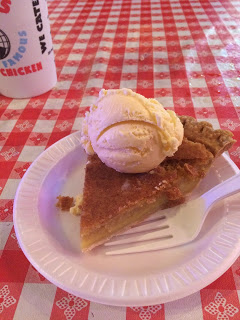 I have no regrets. Unlike the prior establishment, Gus’s Fried Chicken was an unpretentious and welcoming environment with solid food and southern hospitality. Healthy? Certainly not. Tasty? Obviously. I very rarely order dessert when I am out. Had the server asked, “Would you like some dessert?” I would have said no, without question. However . . . he said, “Can I interest you in pie?” And my natural response was, “What kind of pie?” He listed about six different kinds including familiar types like pecan, coconut, and apple, but the last one he listed did not sound familiar. Of course, I had to try the unknown kind. It was called chess pie, which is like a custard pie. It is evidently a southern thing, and therefore unhealthy, but it was very very tasty. From Little Rock, I bid you *BURP* good night. And excuse me.