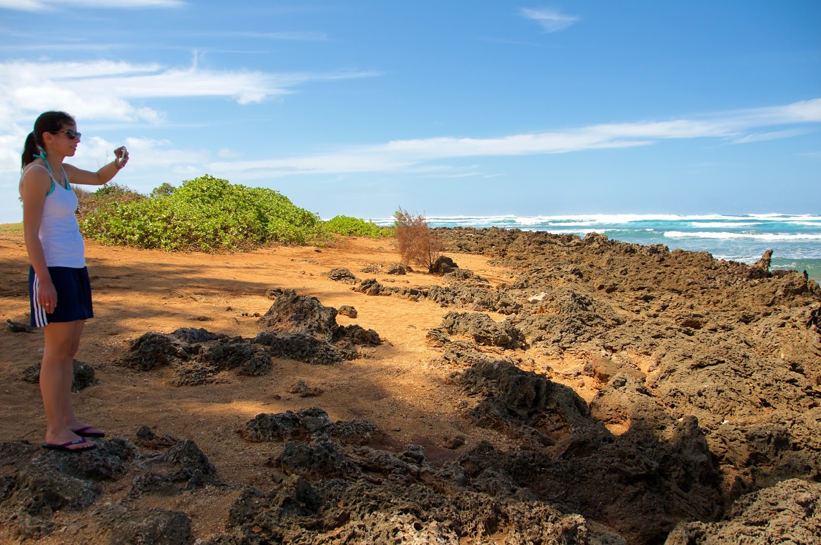 This time was a little different. The town was absolutely packed. Traffic was a mess. We were just trying to find food at a grocery store or market for lunch, but even finding a parking spot was a challenge. This was not the carefree North Shore that I remember. I’m not sure if it was a sudden influx in tourists due to spring break or other factors like a rebounding economy, but it certainly wasn’t relaxing. When we finally got a sandwich and some sushi at a market, we resolved to get the hell out of the town and eat it someplace else. I drove us to a nearby beach park, where only locals were having picnics, and we found a bench where we could eat in peace.
