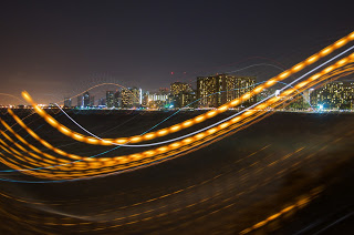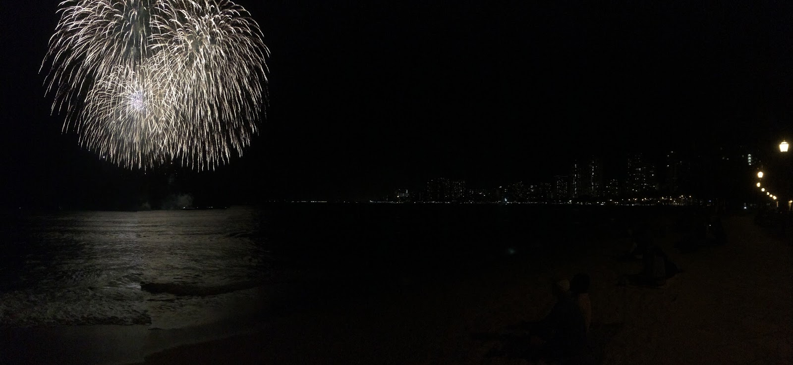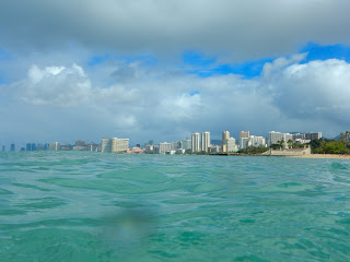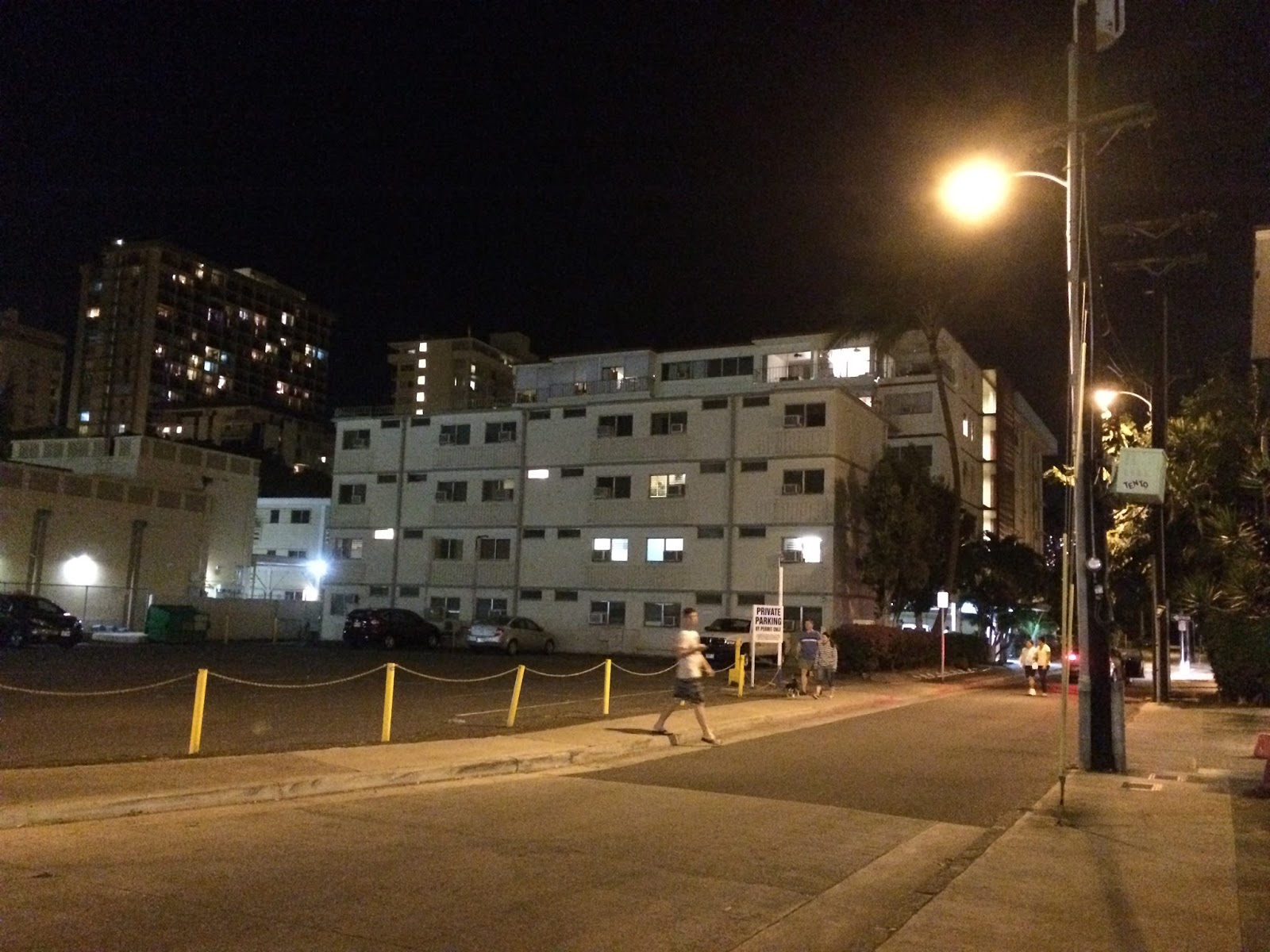 We completed our night by snapping pictures of the Waikiki skyline, where I accidentally achieved this bizarre effect you see here. I had set it on a rock wall so I could use a long shutter to try and capture more of the waves rolling in. However, in the middle of my four second exposure, I noticed a larger than normal wave rolling in and picked up my camera an instant before the wave crashed over the rock wall drenching the spot where my camera had been sitting.