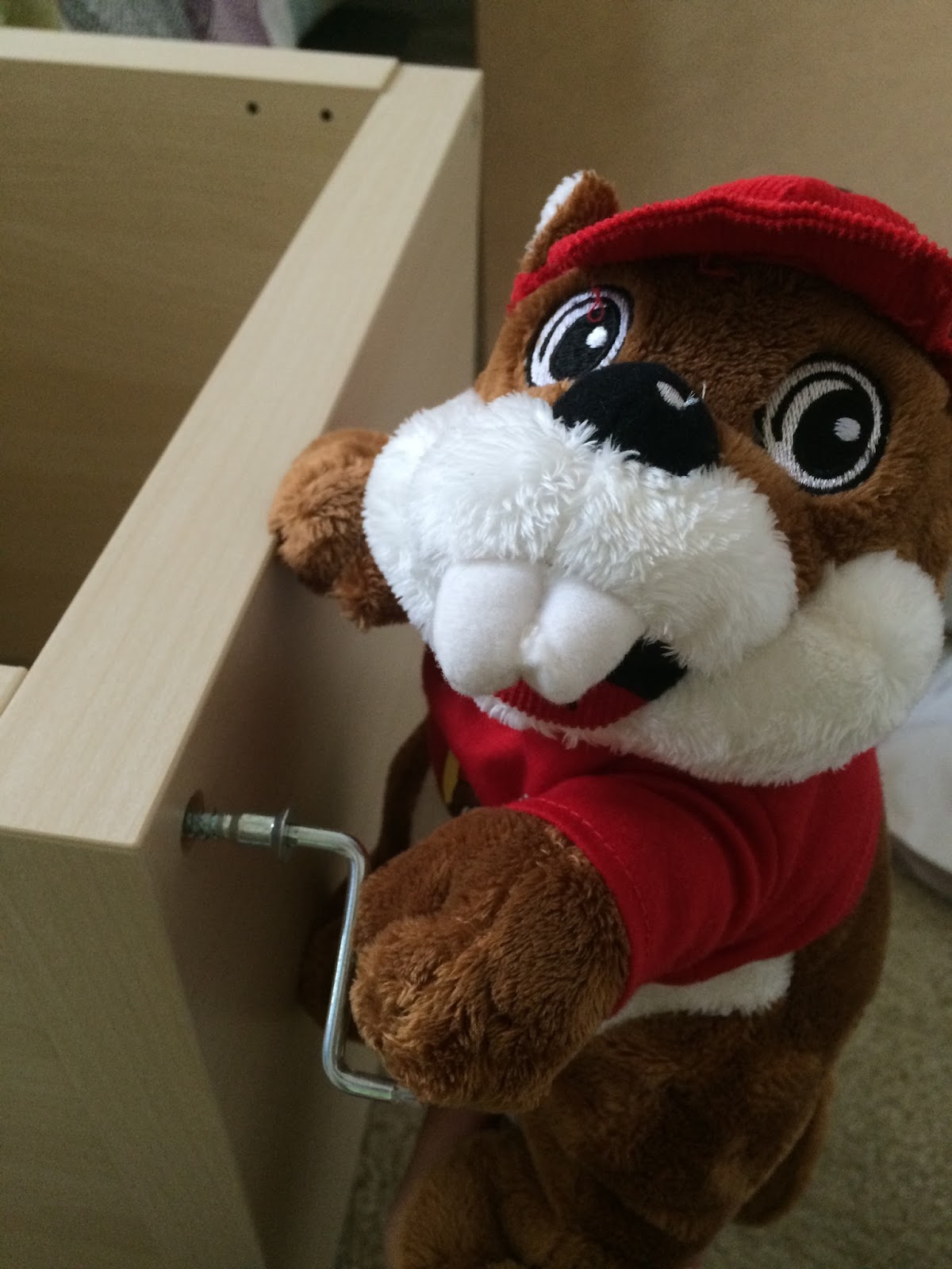 With some changes going on at our Houston base, our number of reservists has shot up, which has a negative effect on me since I’m at the very bottom of seniority. Basically, I can’t expect many calls to fly over the next month. And as much as I despise going to places like Ikea, it gave me purpose. Now at least I had some work to do. My niece has a small plush beaver named Buc-ee, who is the mascot for a truck-stop style convenience store chain throughout Texas. I enlisted his help in building the overly complicated Ikea bookshelf.