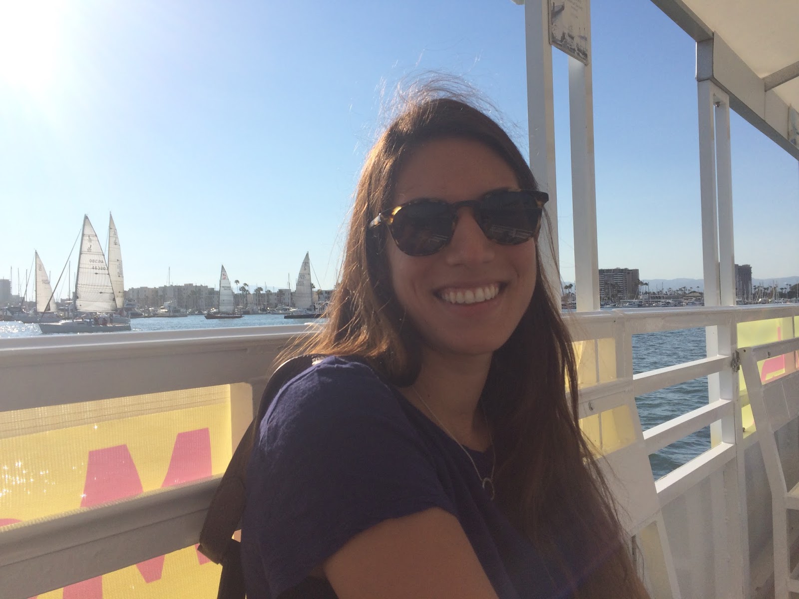 Spoiler Alert! I’m not engaged, but I did get a delightful white chocolate macadamia nut brownie cheesecake. After our adventures at the cheesecake factory, we took the waterbus back to Fisherman’s Village, a small shopping area with restaurants made to look like a quaint fishing village in New England. Along the way we passed a massive yacht (complete with helicopter and landing pad). I am not sure who could ever own such a yacht (or what their profession might be), but such opulence and luxury is rarely seen by my eyes — even in Marina del Rey.