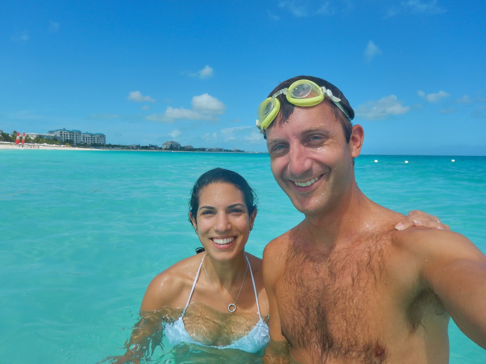 Fully expecting to wake up to rain, we were surprised to find the sun poking through some cloud cover. After a breakfast of bagels and donuts purchased from the grocery store, we went out to the beach in front of the hotel. After a bit we decided to go into the water. It was a comfortable temperature. Not really much in terms of sea life to look at with the exception of an occasional lost fish, but it was nice and clear. We were at the beach for a while, but for whatever reason, my nose started draining uncontrollably from the salt water, so we went back in to take care of me.