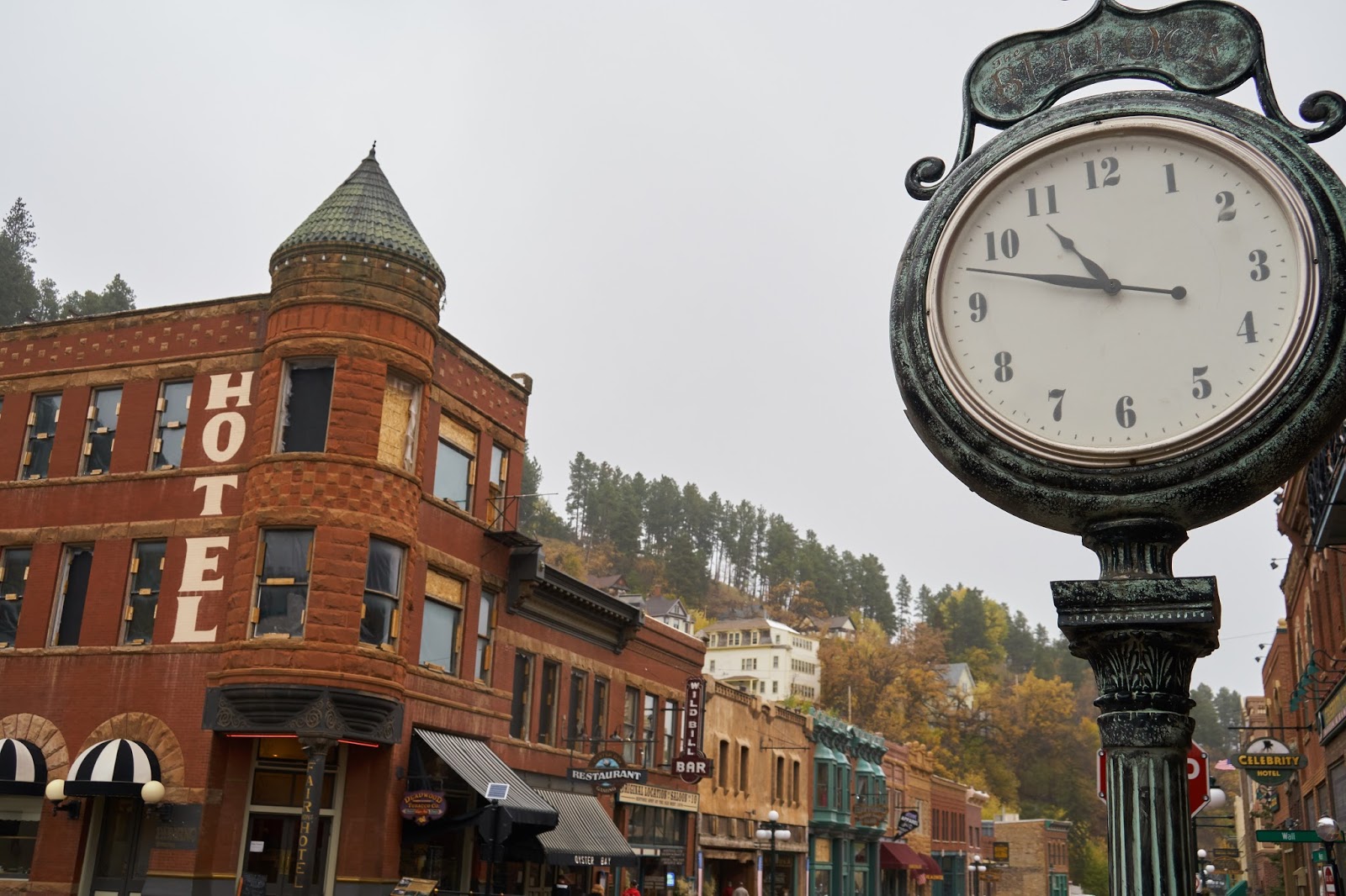 It was drizzly today. It was in the 30s pretty much all day, so time outside was limited. As we drove back into South Dakota, we made a stop in Deadwood, the town known for its lawlessness — now home to tacky tourist shops selling confederate flags and t-shirts with Donald Trump riding a motorcycle. We plugged a meter for 45 minutes, and this was ample to explore the town. As previously mentioned, it was also rather cold, so we didn’t feel like lingering too long outside in the elements.