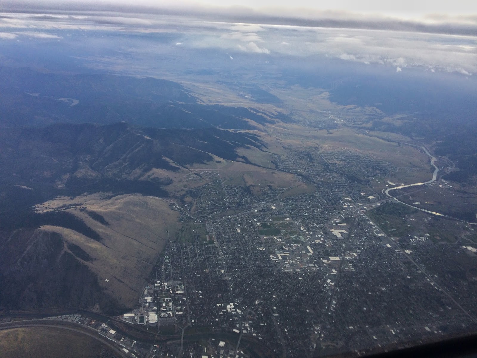 Here’s a quick snap of Missoula, Montana as seen during our climbout yesterday. You can see the “M” I climbed to in the lower left on the side of the mountain. As I’ve been had multiple Montana overnights this trip, I can start some comparisons. Missoula seemed vibrant, active, and up-and-coming. Then I landed in Helena last night and went for a walk this morning. It has a very different feel. It looked stuck in 1987.