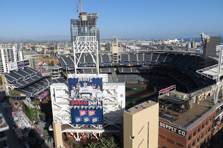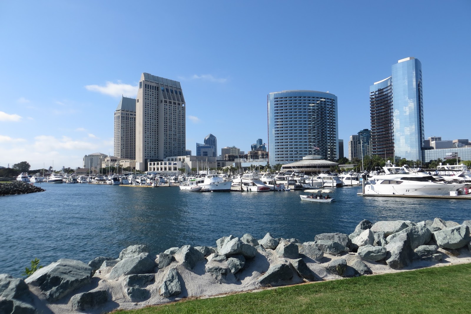 Anyway, from there we cut back in near the gas lamp district, where we encountered more crowds and slow walkers. We walked by the Padres stadium and then back out to the bay. We used the bathrooms at a Hilton near the convention center (sometimes a good bathroom is hard to come by) before relaxing for a bit at a nearby park.