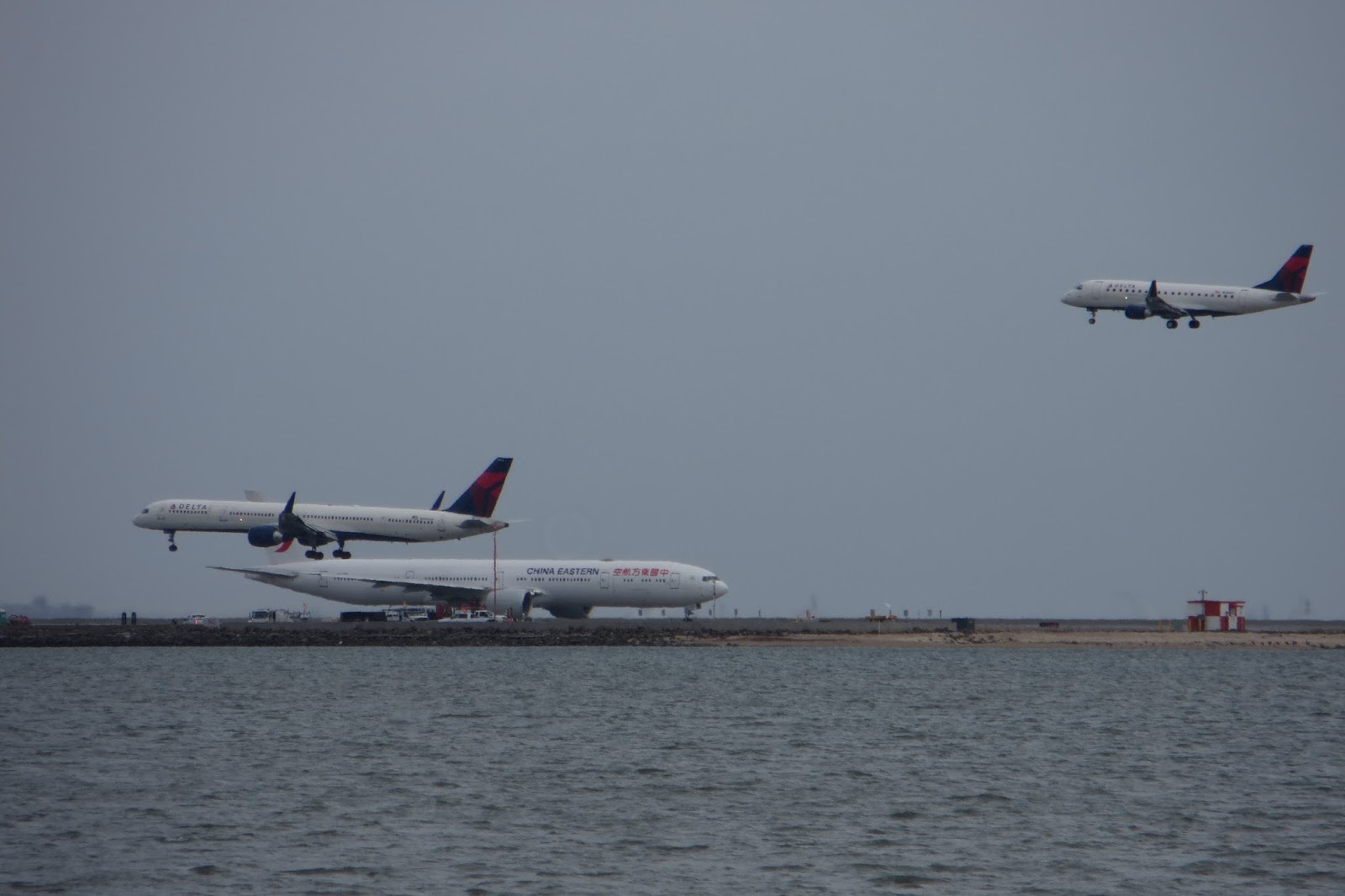 I’m here at the hotel near San Francisco International watching planes fly over the bay from the window. SFO is an interesting airport operationally since they typically land completely perpendicular to the departing traffic. This means that airplanes taking off share the same piece of pavement just a minute before a plane landing crosses that same spot going another direction. It’s a little trippy to be rolling down the runway and look out my right window to see a 777 just 2 miles away heading straight for us. That being said, it works.