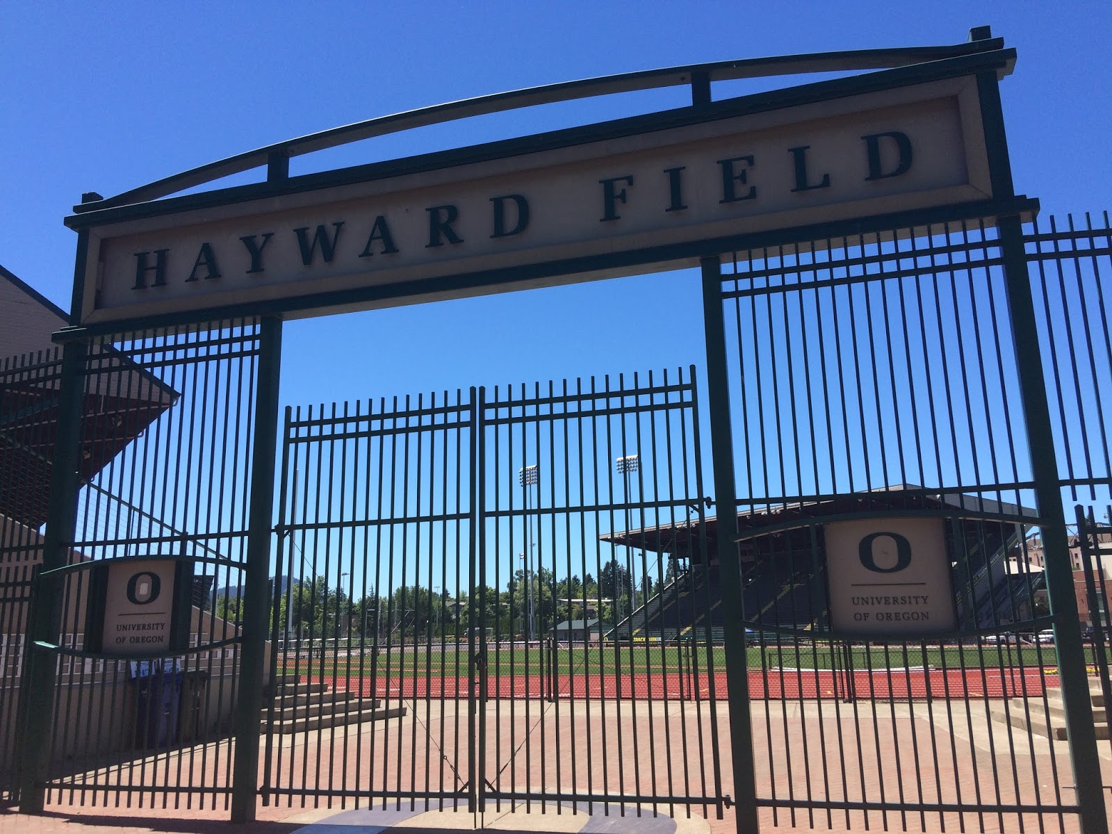 It was a scenic run on a beautiful day. Many people were out on the path. After I returned, I went back out in my flip flops and walked to the University of Oregon, which was just across the river. I made a stop at Hayward Field, where Pre ran track. It’s also where the national championships are held these days. It’s not open to the public, though I read you can take a running tour of the track if you schedule ahead of time. That all seems very silly. I guess it’s like hallowed ground for runners, but at the end of the day, you’re still just running in a circle.I worked my way back to the hotel and called it a day before getting ready for my next flights back down to LAX and on to Tucson, Arizona where it is a brisk 114 degrees. . . but it’s a dry heat I’m told.