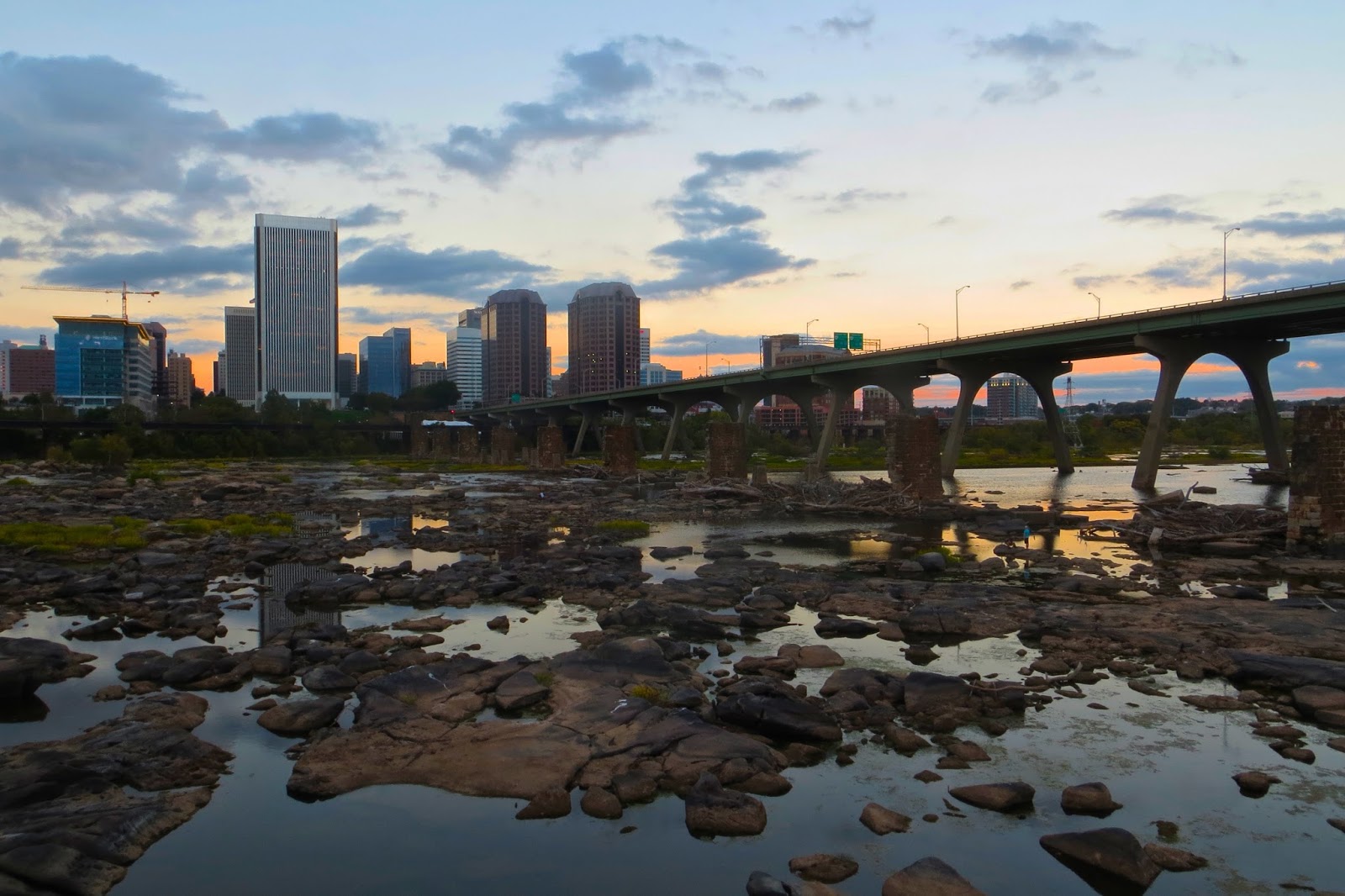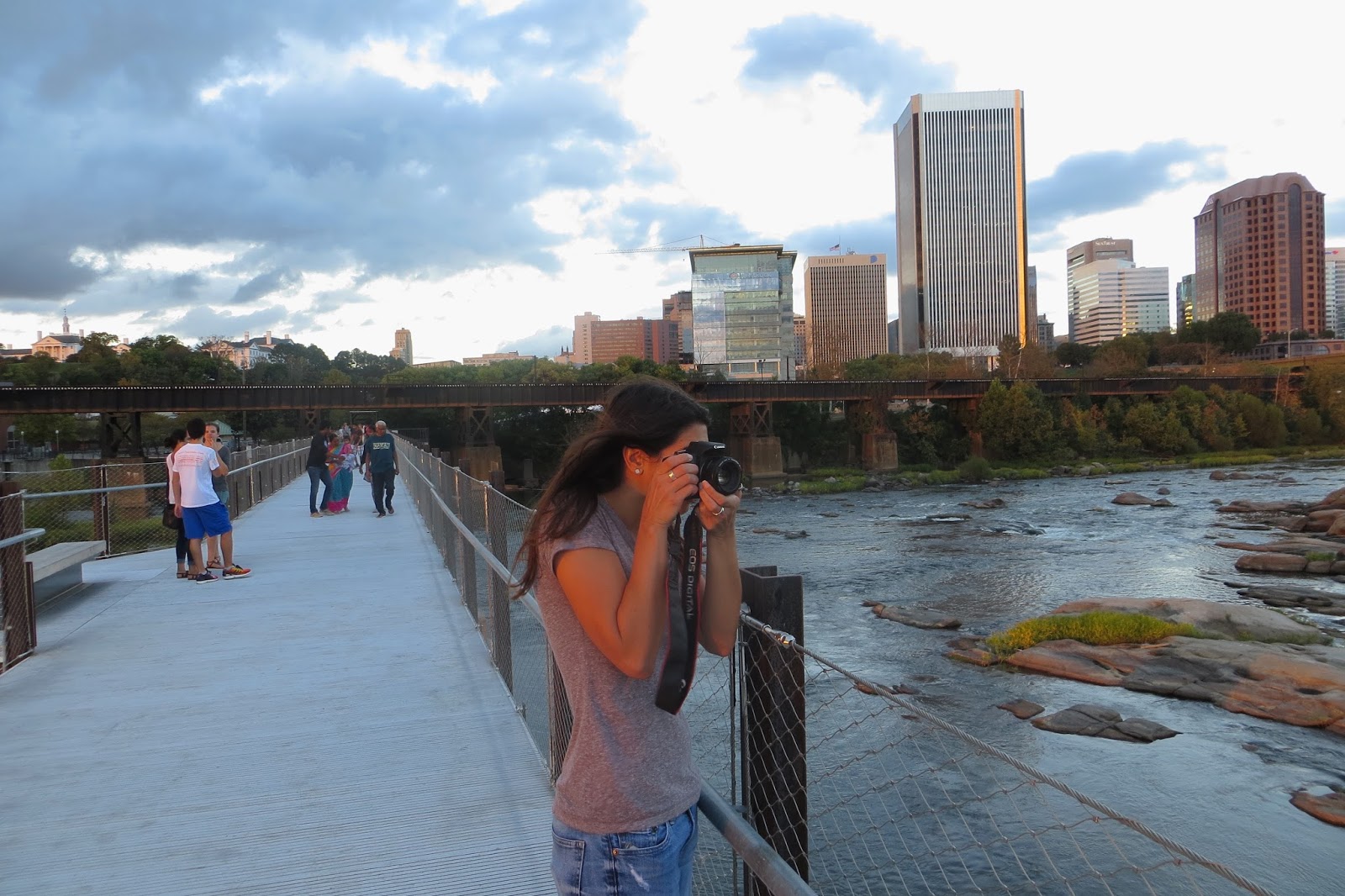 Being the capital of the Confederacy at one point, I suppose it was unsurprising that this avenue was full of confederate statues. Whether or not they deserve to be prominently displayed out in public is a whole different debate and I’ve made enough of such political rantings lately, so I’ll let this one be. Robert E. Lee was our first sighting, followed by Jefferson Davis. I guessed (correctly I might add) that the next statue would be Stonewall Jackson. After that was Arthur Ashe . . . a black tennis player, who won numerous grand slams in the 60s/70s. And now he shares a street with Jefferson Davis. Only in America. We walked by the Museum of the Confederacy and the Confederate White House. It was $10 for the museum, so we didn’t go in. The “White House” didn’t look like anything special either. I saw much nicer homes in Richmond in an area known as “The Fan.” Later in the evening, we returned to the river by downtown.