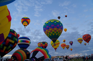 The dawn patrol was an interesting spectacle because each time they fired their propane, the entire balloon would illuminate like a Turkish lamp. Another interesting aspect of the fiesta is that there are no ropes blocking a spectator from the action. I was able to walk freely around the grounds without anyone telling me to stop. I was close enough in many cases to feel the heat coming off the propane of balloons just beginning to rise.