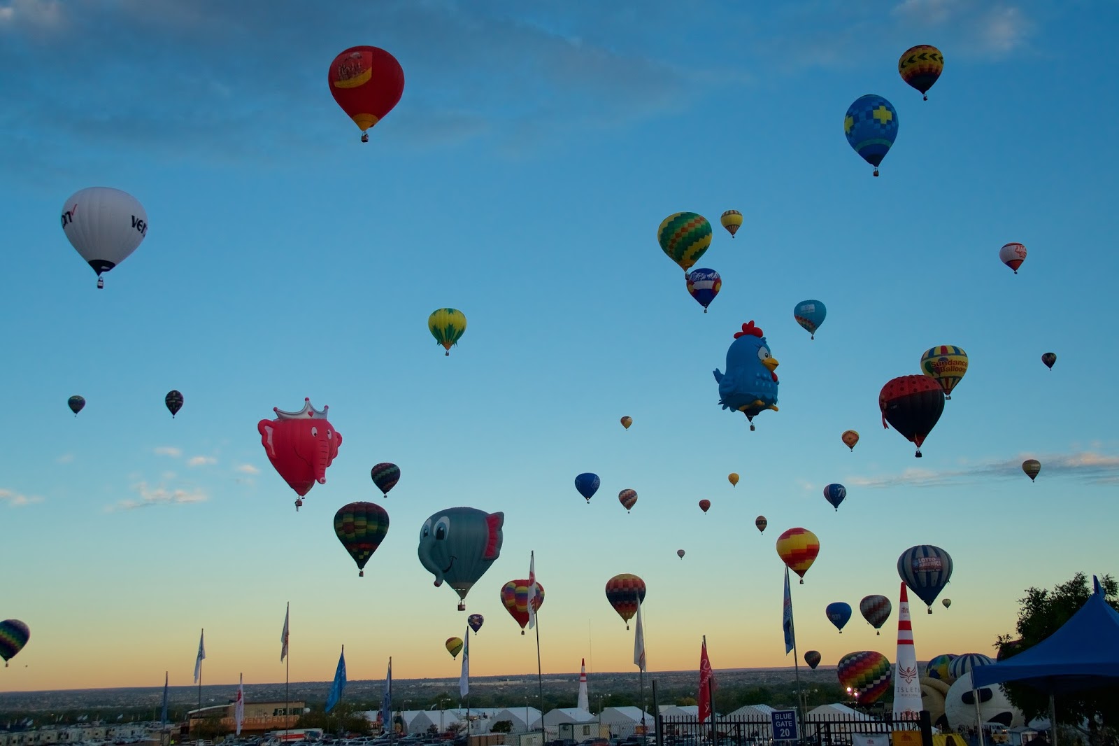 As the sun got higher, entire rows of balloons began to launch. Unlike an airshow where F-16s are doing high-speed passes and making everyone deaf, the only sounds were the periodic firing of the propane. This proved to be invaluable cover for the gas I too was firing thanks to the green chili breakfast burrito. By now, I was working my way toward the exit. This was easier said than done.