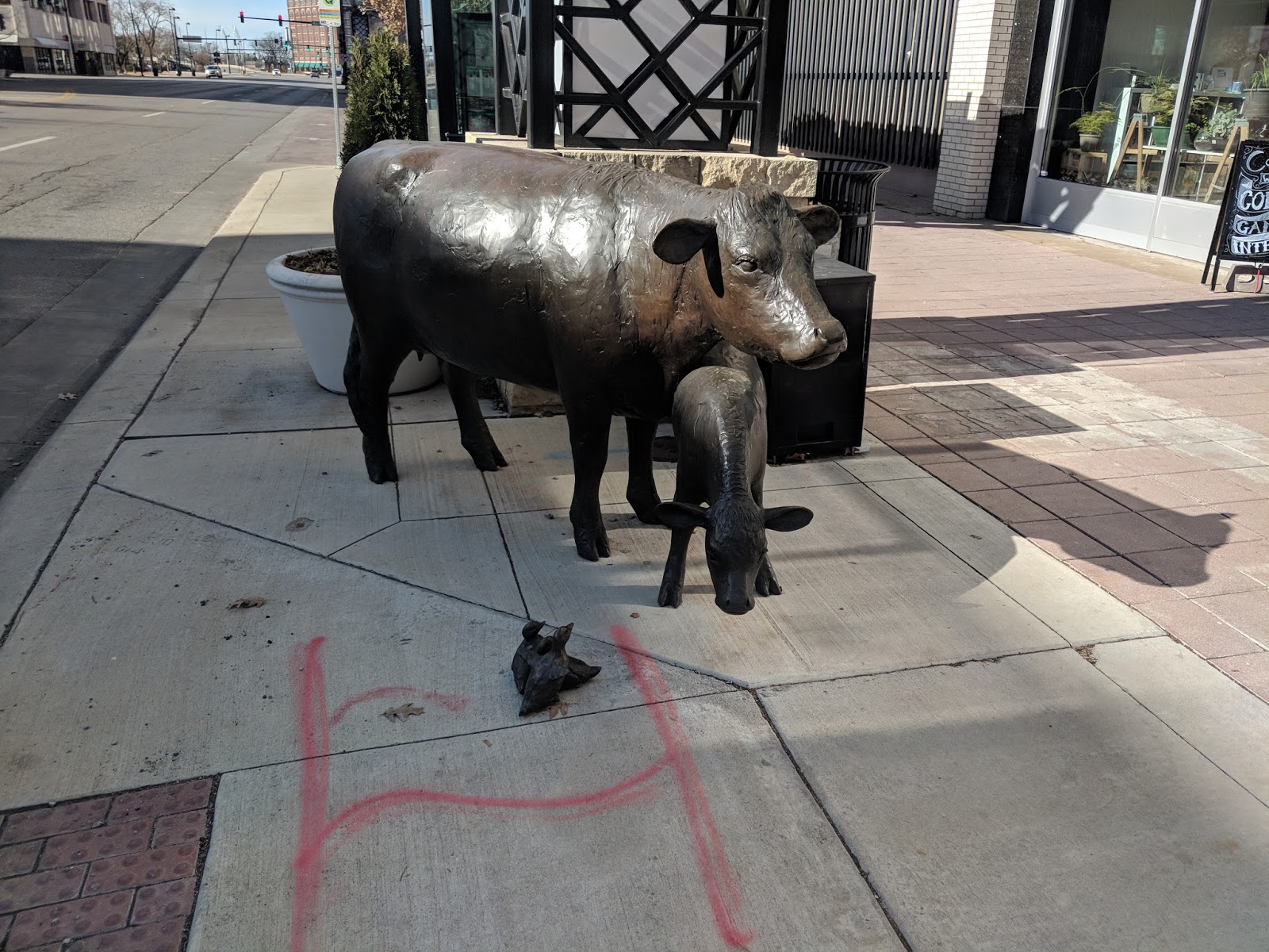 The creepy statues were my only company on downtown’s streets. As I have previously speculated, it’s to give downtown the illusion of being active and vibrant. I’m not sure if this town is a has-been or a never-was. Perhaps they are yearning to make America great again, like when cows roamed the streets and stores were open. But without exaggeration, I saw one place open during my entire walk. The rest were for lease or simply closed.