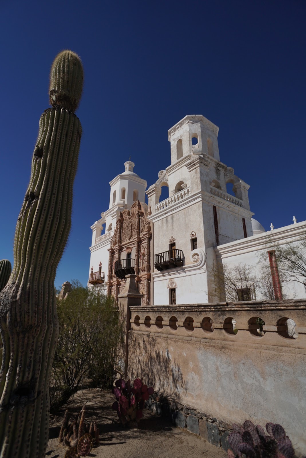 This age gap did not change when we got to the missile site itself. There were 25 people on the tour, and all but 3 (including us) were over the age of 65. Nevertheless, they were active enough to be capable of walking down the many steps to reach the base of the missile and the missile control room. It was good to get some insight into the inner workings of a missile site that contained the most powerful warhead in U.S. history. Apparently the explosive power would have been 650x that of the atomic bombs dropped over Japan. So that’s some food for thought considering the U.S. still has 450 land-based missiles alone. It is a bit overkill, but what do I know. Anyway, on our way back to the city from the missile site, we stopped at the San Xavier del Bac Mission.