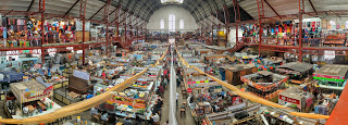 After catching a few winks, we went into town and walked through the historical center of Guanajuato. Nicole snapped this wide-angle shot of the iconic church, which I believe goes by the official name of “Big yellow church” which is far easier than the unofficial name of “the basilica Colegiata de Nuestra Señora de Guanajuato.” We continued our stroll through the streets and went to the Mercado Hidalgo to do a bit of shopping for some kind of memorabilia.