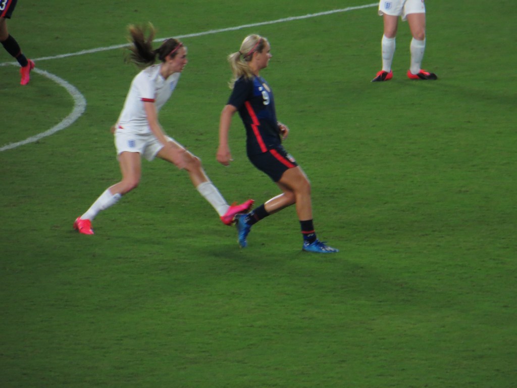 Anyway, back to England. After a tense and scoreless first half, the action picked up after halftime. We got to watch Carli Lloyd and Christen Press score the two goals for the U.S. These two were bench warmers in the game against Thailand that we saw during the World Cup, so it’s interesting to see their change in status since the new coach took over. After some hair pulling, flopping, and tripping, the whistle finally blew, and we could go home.