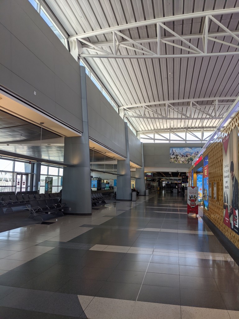 Once in, you must take a tram to your concourse. It is not the kind of airport that you can get dropped off and be at your gate in 15 minutes. If you rented a car, you would first have to go to the offsite car rental facility, take a slow bus to the terminal, go through the lengthy security, go down a long escalator, go on the tram, go up a long escalator, then walk to your gate. It’s not the most streamlined process.