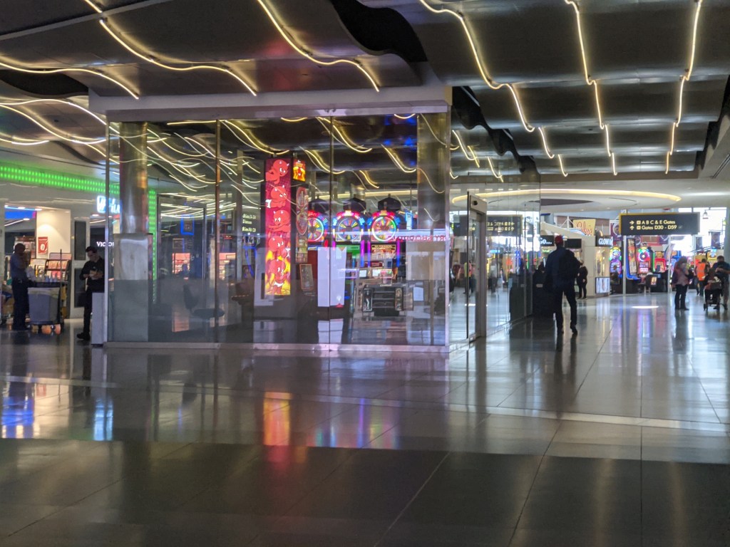 Thusly one’s experience in this airport could be quite varied depending on your airline of choice. Assuming you’ve been smart and booked with a real airline, you get to hang out in the D-gates. Congratulations! You have a bit more personal space to spread out in, which is nothing to scoff at in the times we live in. That being said, security lines in Las Vegas are no joke. Like a popular nightclub on the strip, the average wait time is 37 minutes. Airports that are much busier have figured out how to get wait times to less than 10 minutes. Even inefficient Newark has figured it out, though they will verbally abuse you as you go through security, so that’s the trade off.